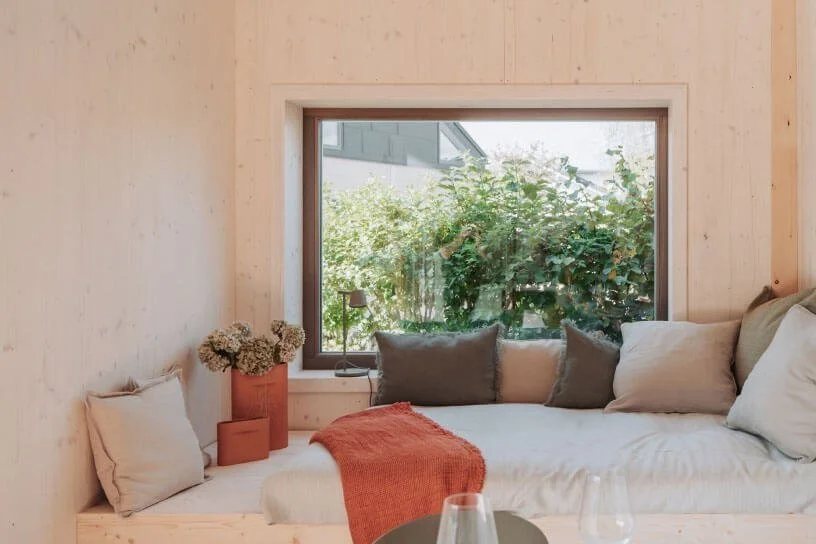 DAS SEEHÄUSER is a TinyHouse Resort by the lake, 20km from Salzburg. 37 solid wood TinyHouses with private terraces and private beach access. Here, at Lake Mattsee, you'll find a retreat, far away from the noise and stress of everyday life. A place designed for recharging your energy and creativity while exploring the surroundings. Their TinyHouses are for those seeking the luxury of tranquility, relaxation, and simplicity. Finding rejuvenation within your own four walls. The TinyHouses have a minimalist design and offer space for your unique character. The fragrant wood creates a pleasant indoor climate and blends gently with the surrounding nature. Perfect for 1 to 2 persons.